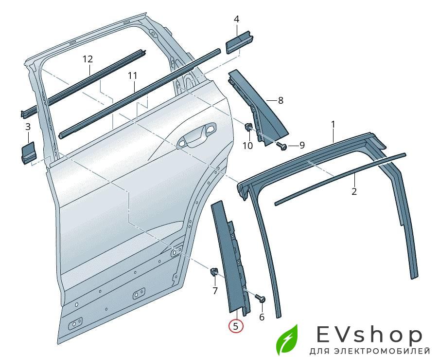 Накладка на заднюю левую дверь, передняя часть стекла (стойка B), Audi E-Tron