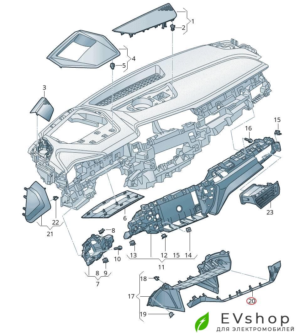 Декоративная накладка центральной панели (пластик над центральной консолью), Audi E-Tron