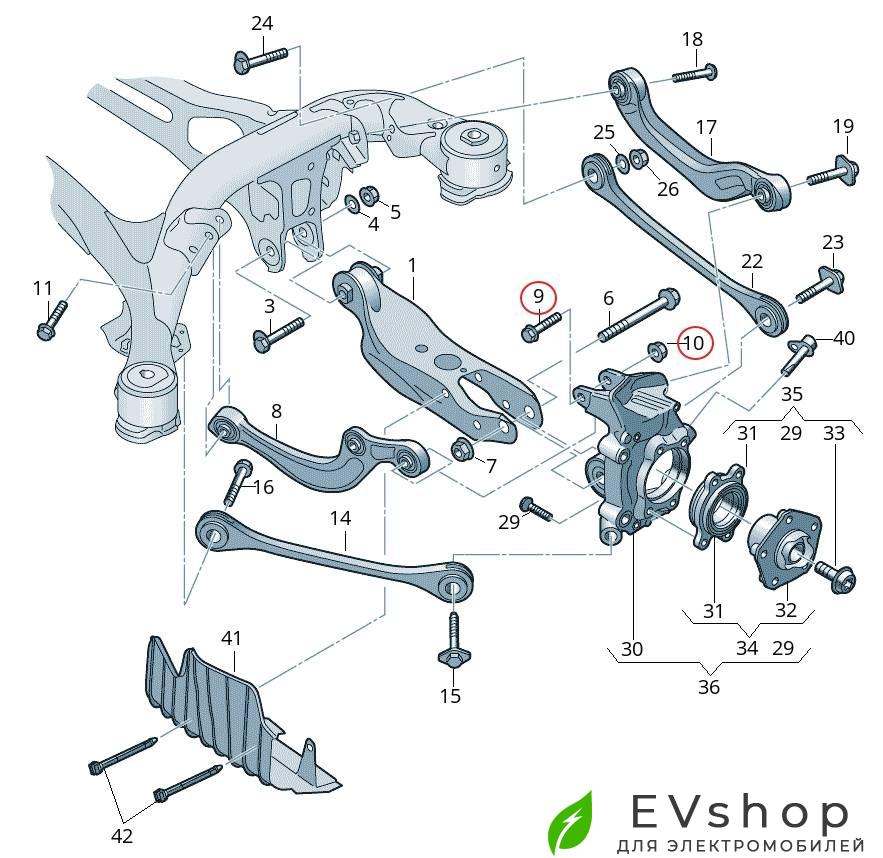 Болт, шайба, гайка крепления заднего верхнего рычага (под датчик) к кулаку, M12X1,5X85, Audi E-Tron