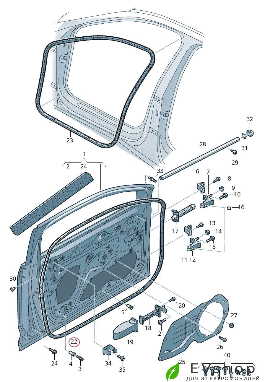 Уплотнитель по контуру двери передней, правой, Audi E-Tron